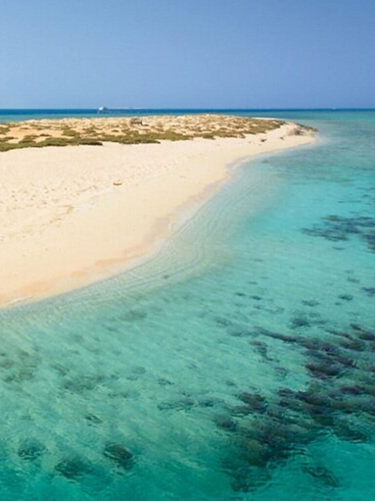 Teil eines Naturschutzgebiets im Roten Meer, berühmt für weiße Sandstrände, unberührte Korallenriffe und eine faszinierende Unterwasserwelt voller exotischer Meeresbewohner.