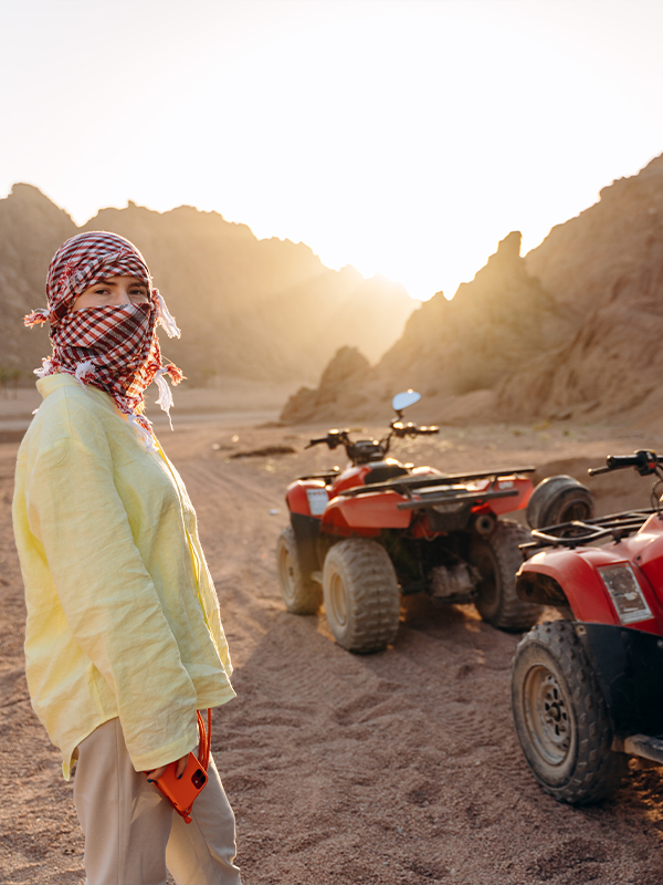 Erkunden Sie die Wüste aktiv auf dem Quad, im Buggy oder Jeep – mit spannenden Einblicken in die Kultur der Beduinen, traditionellem Essen und unterhaltsamer Show.