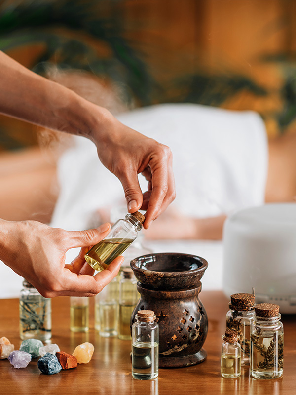Kombiniert: traditionelle Massage-Techniken mit der Verwendung von ätherischen Ölen aus aromatischen Pflanzen